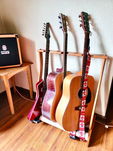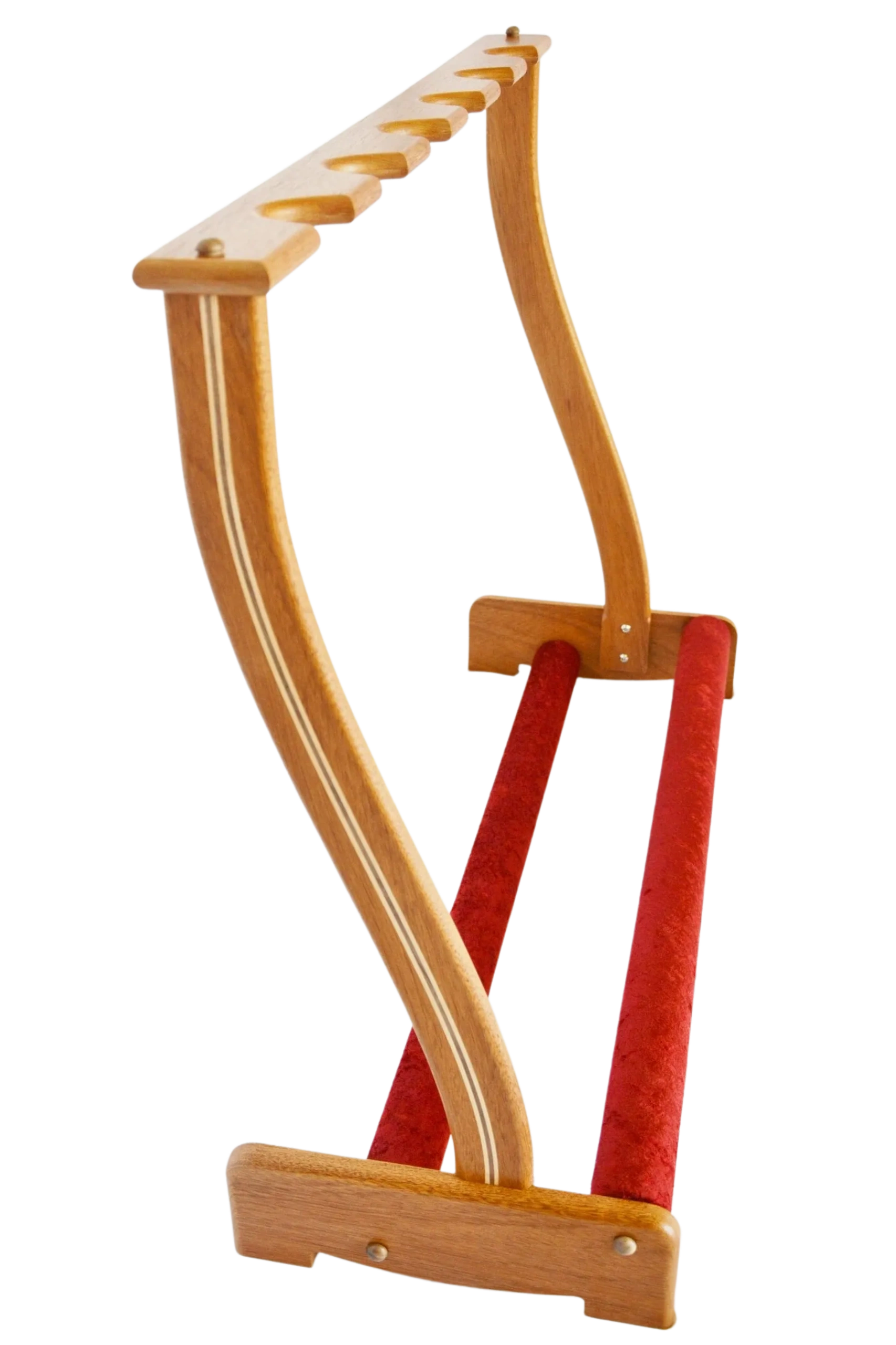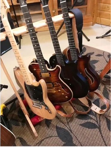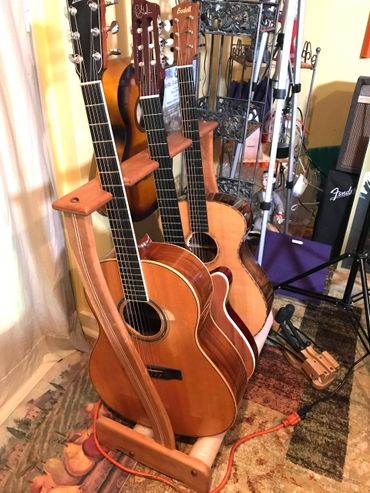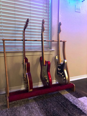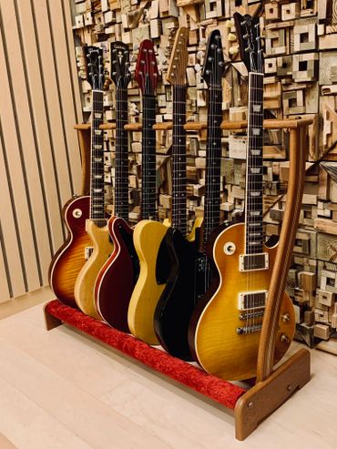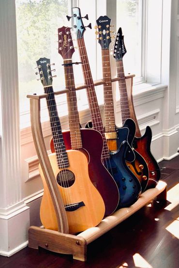 JBrent Woodworks can custom build a guitar stand with choice of wood(s) geared toward a particular guitar collection.